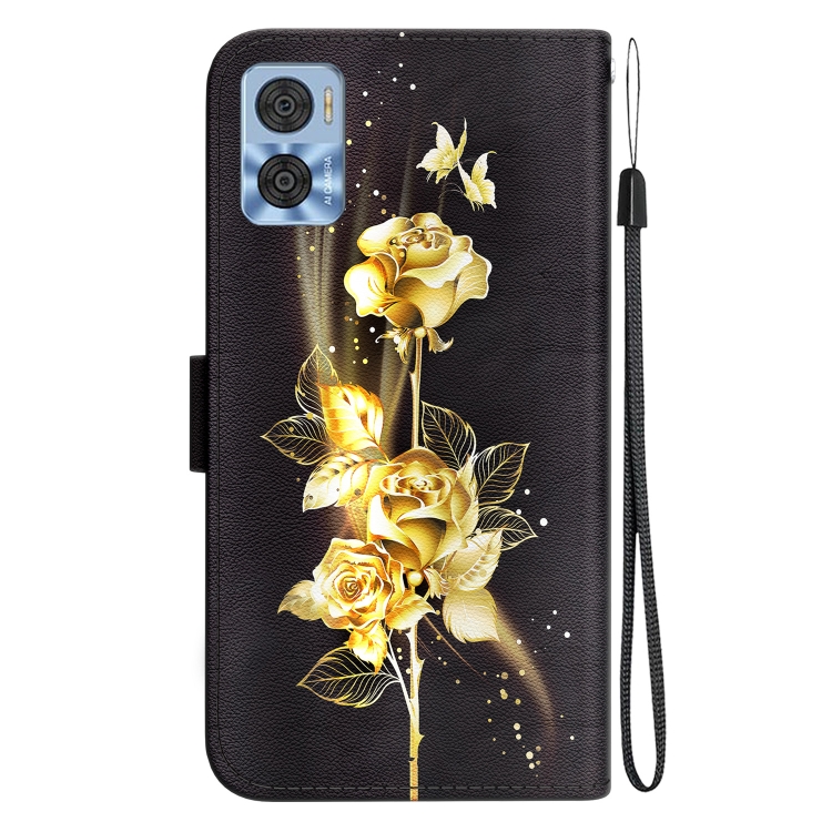 Funda para Motorola Moto E22 / E22I de Cuero con Dibujo Coloreado y Textura de Cristal (Mariposa Dorada Rosa)