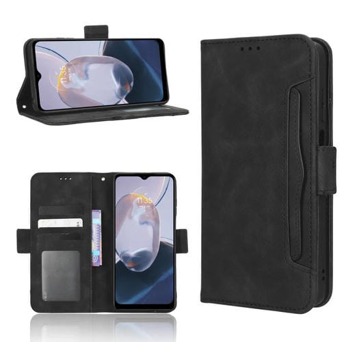 Funda de Cuero para Motorola Moto E22 / E22I con Textura Becerro y Ranuras para Tarjetas (Negro)
