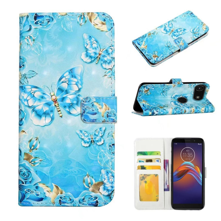 Funda de Cuero para Motorola Moto E6 Play con Dibujo 3D en Relieve al Óleo (Mariposas Azules)
