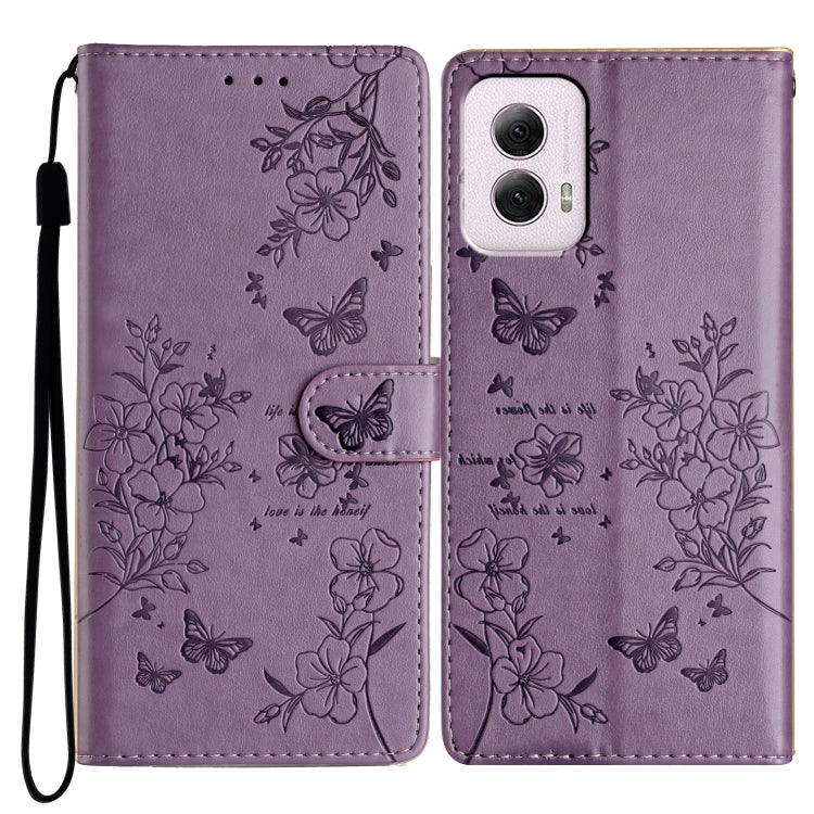 Funda de Cuero para Motorola Moto G Power 5G con Mariposas y Flores (Púrpura)