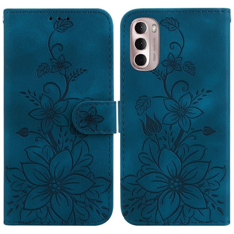 Funda para Motorola Moto G Stylus 4G 2022 de Cuero con Relieve Lily (Azul Oscuro)