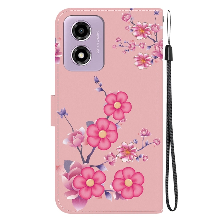 Funda para Motorola Moto G04S y Moto E14 de Cuero con Dibujo Coloreado y Textura de Cristal (Flores de Cerezo)