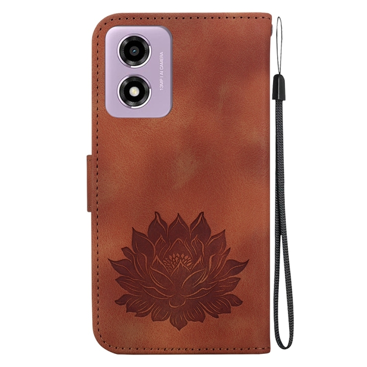 Funda para Motorola Moto G04S y Moto E14 de Cuero con Relieve de Loto (Marrón)