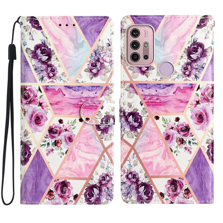 - 1x Estuche para Motorola Moto G10 y G30 de cuero con dibujo coloreado Mármol (Púrpura)