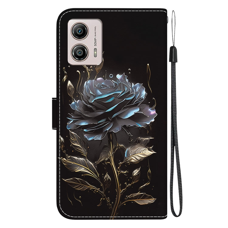 Funda para Motorola Moto G13 G23 G53 de Cuero con Dibujo Coloreado y Textura de Cristal (Rosa Negra)