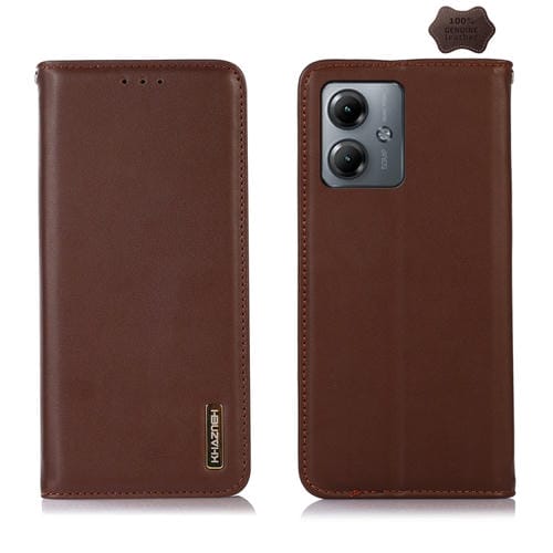 - 1x Funda para Motorola Moto G14 4G Khazneh Nappa Cuero de Vaca con Capa Superior (Marrón)