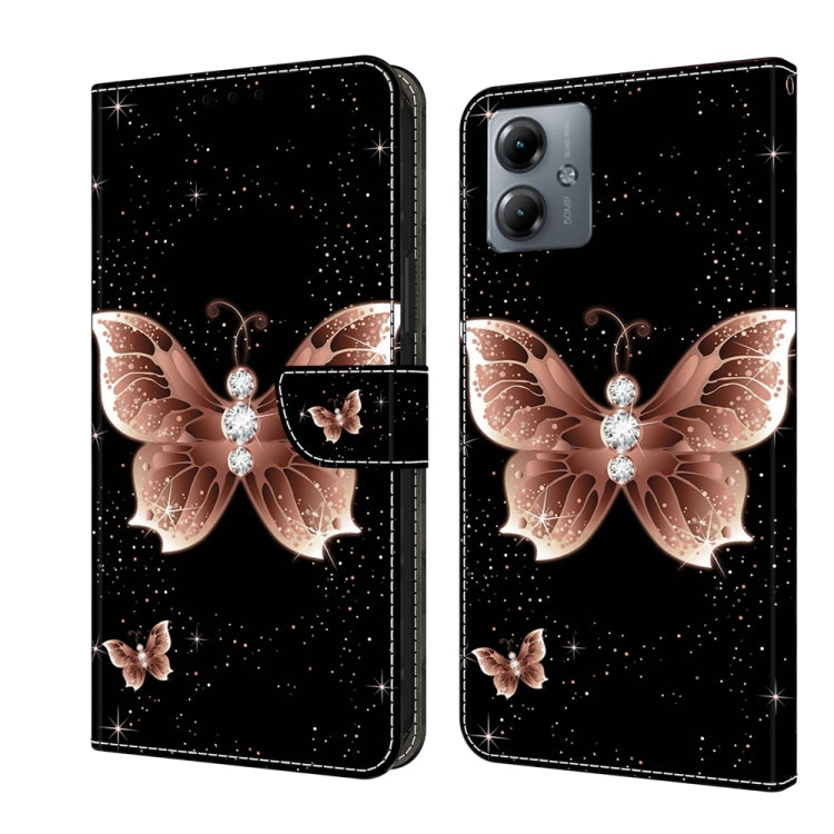Funda Protectora de Cuero para Motorola Moto G14 Crystal 3D a Prueba de Golpes (Mariposa de Diamante Rosa)