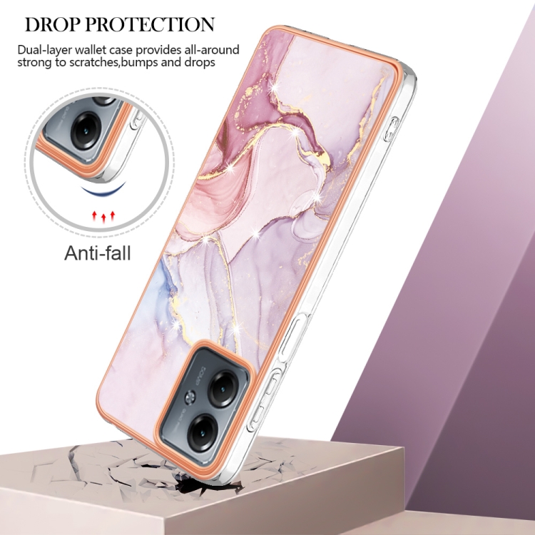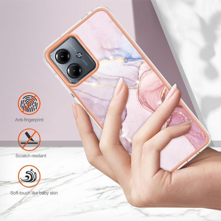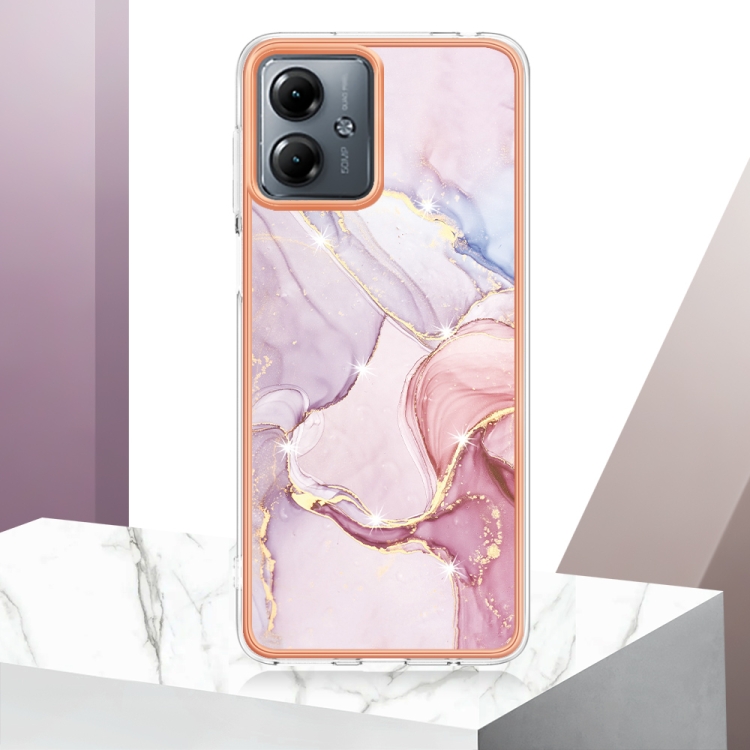 Estuche para Teléfono Motorola Moto G14 Imd Doble Cara Mármol Galvanizado (Oro Rosa)