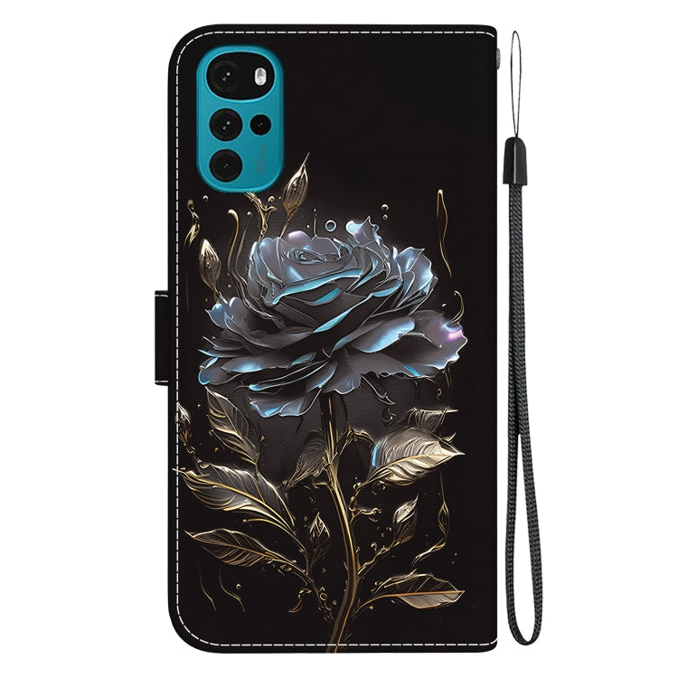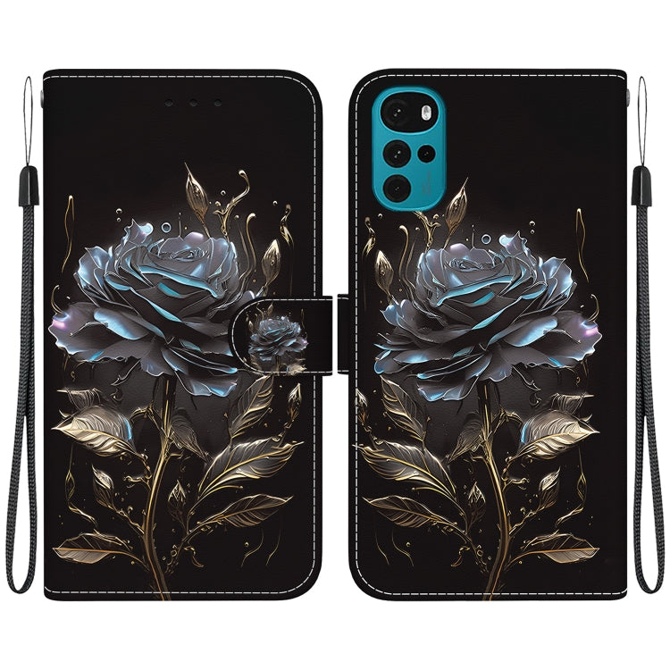 Funda de Cuero para Motorola Moto G22 con Dibujo Coloreado y Textura de Cristal (Rosa Negra)