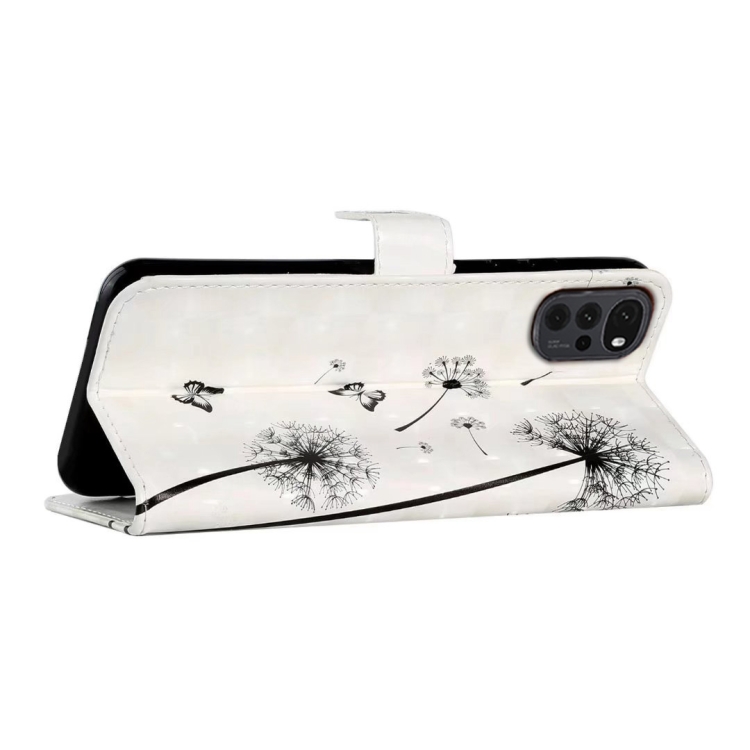 Funda de Cuero para Motorola Moto G22 con Dibujo 3D en Relieve al Óleo (Pareja de Diente de León)