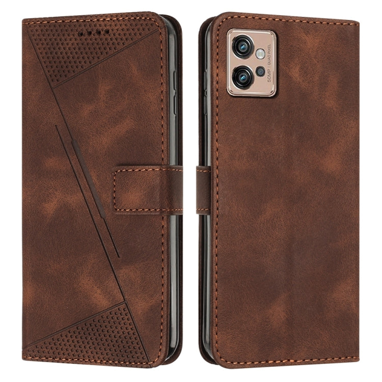 Funda de Cuero para Motorola Moto G32 Dream Triangle con Cordón (Marrón)
