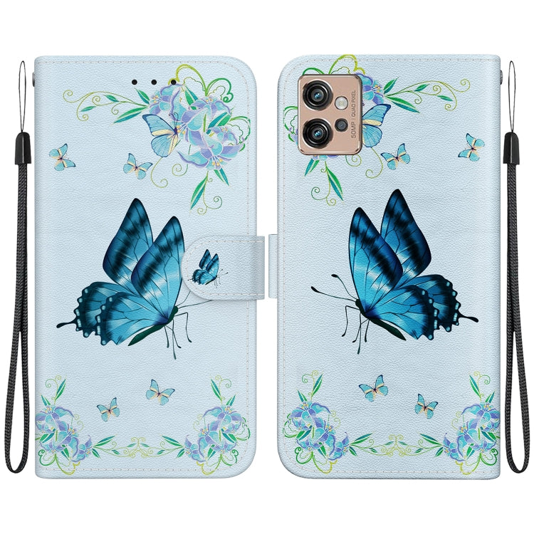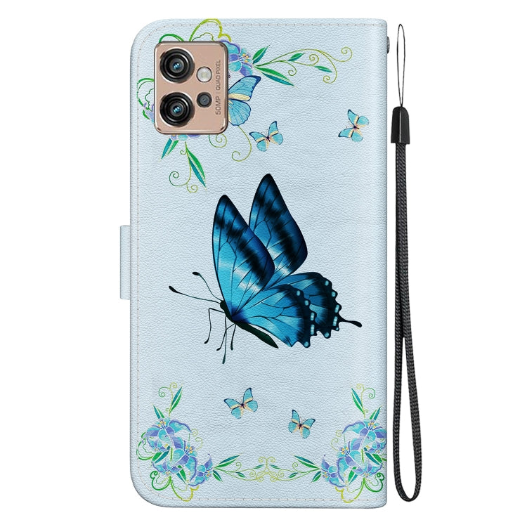 Estuche de Cuero para Motorola Moto G32 con Dibujo Coloreado y Textura de Cristal (Pensamientos Azules)