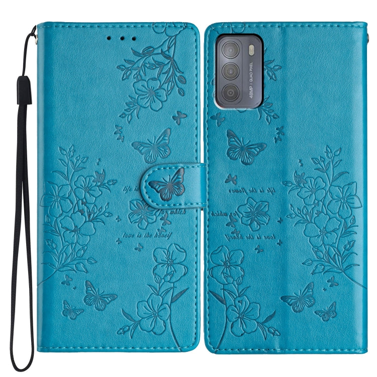 Funda de Cuero para Motorola Moto G50 con Mariposas y Flores (Azul)