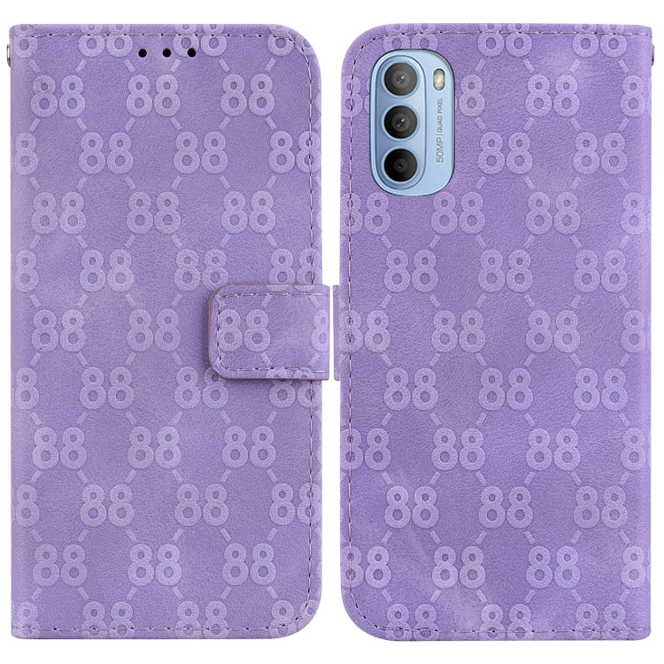 Estuche para Motorola Moto G51 de Cuero en Relieve con Doble Forma de 8 (Púrpura)