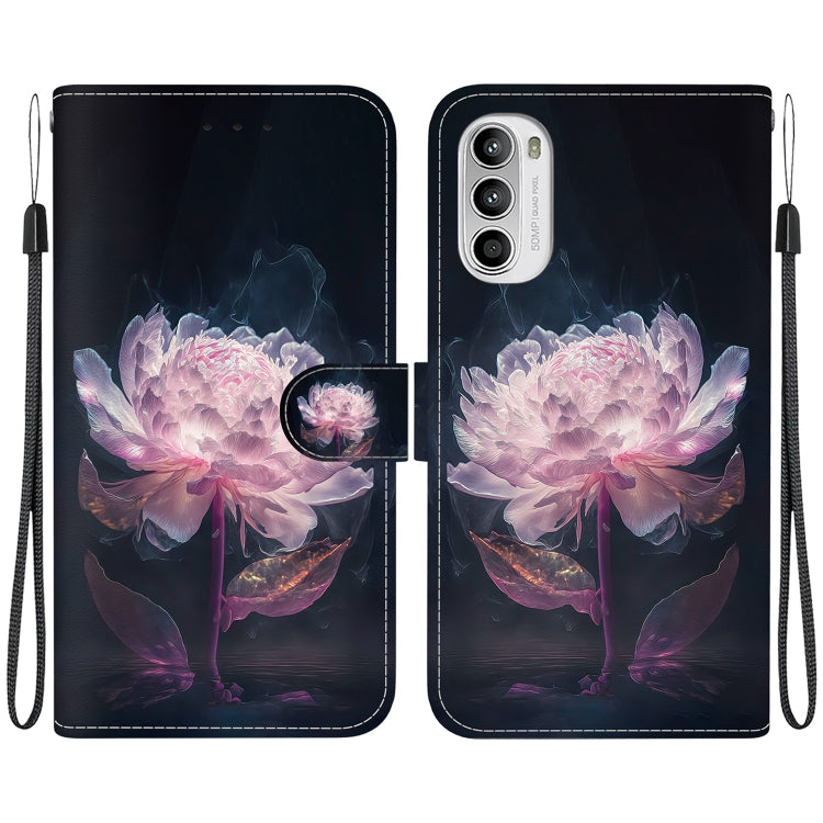 Funda de Cuero para Motorola Moto G52 con Dibujo Coloreado y Textura de Cristal (Peonía Púrpura)