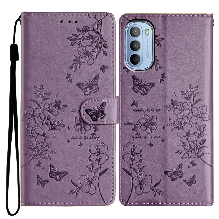 Funda de Cuero para Motorola Moto G52 con Mariposas y Flores (Púrpura)