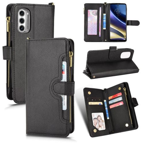 La Funda de Cuero para Motorola Moto G52J 5G con textura Litchi y cremallera en color Negro está diseñada para ofrecer una protección integral y funcionalidad avanzada para este modelo específico. Fabricada con Cuero de PU y material TPU, esta Funda combina durabilidad y resistencia para proteger el dispositivo contra rayones, suciedad y abrasión habitual. Su diseño incluye un Marco abatible que facilita la visualización en posición horizontal, además de incorporar una ranura para Tarjetas que funciona como billetera y Soporte, optimizando la experiencia de uso sin necesidad de retirar la Carcasa. El acceso a todos los Puertos y Botones es directo y cómodo, y se complementa con un cordón que facilita el manejo del Teléfono en cualquier situación.