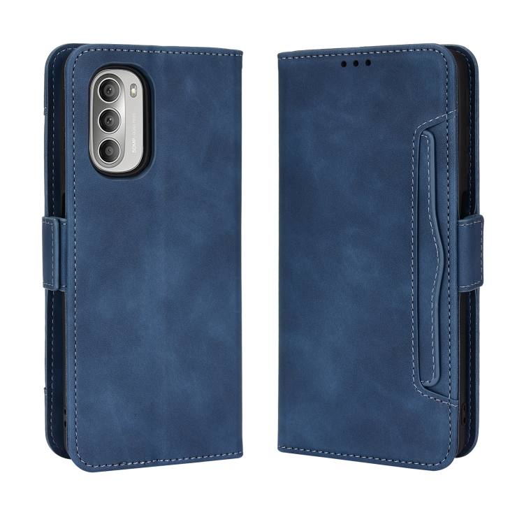 Funda de Cuero para Motorola Moto G52J 5G con Ranuras para Tarjetas y Textura Skin Feel (Azul)