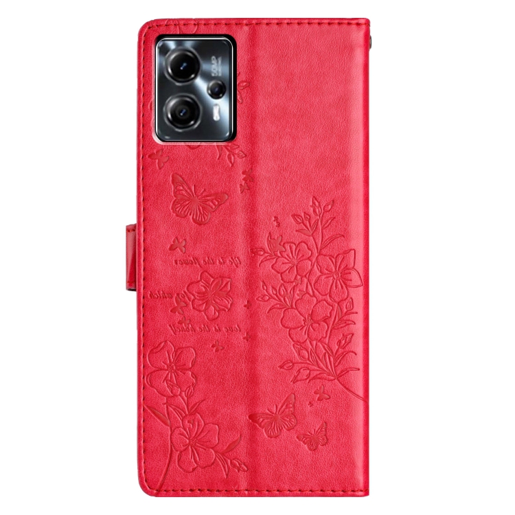 Funda de Cuero para Motorola Moto G53 5G con Mariposas y Flores (Rojo)