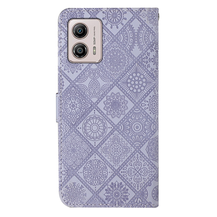 Funda de Cuero para Motorola Moto G53 con Patrón en Relieve Estilo Étnico (Púrpura)