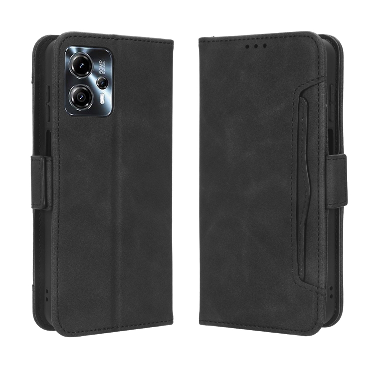 Funda de Cuero para Motorola Moto G53 / G13 con Ranuras para Tarjetas y Textura Skin Feel (Negro)