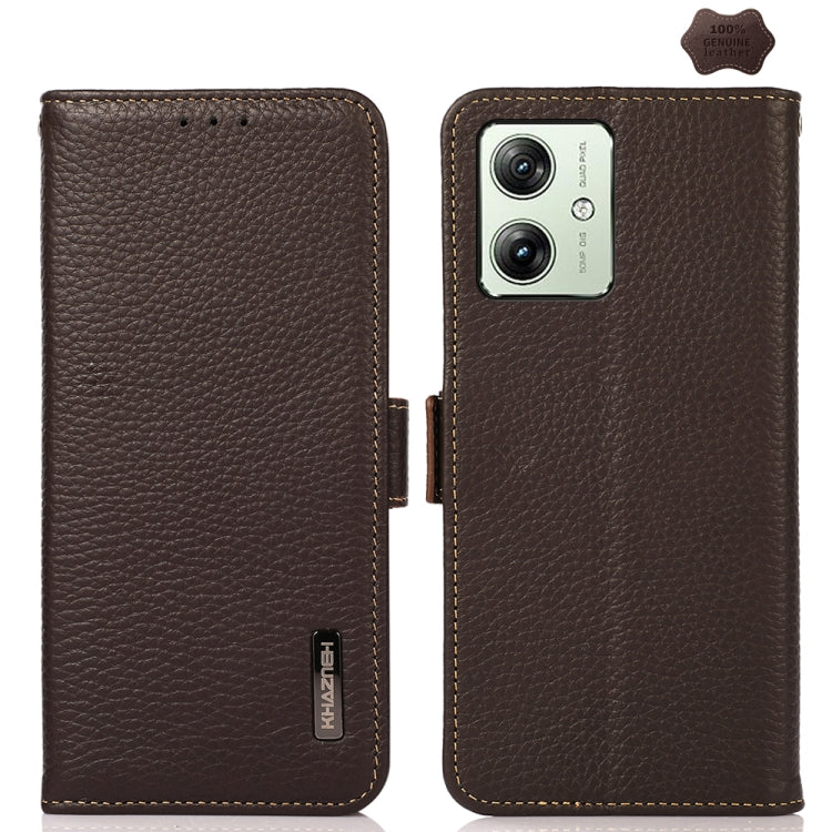 Funda para Motorola Moto G54 5G Khazneh Cuero Genuino Litchi Lateral Magnético (Marrón)