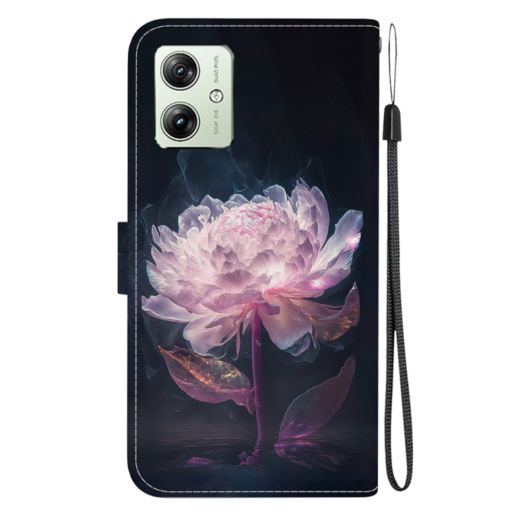 - 1x Funda de Cuero para Motorola Moto G54 con Dibujo Coloreado y Textura de Cristal (Peonía Púrpura)