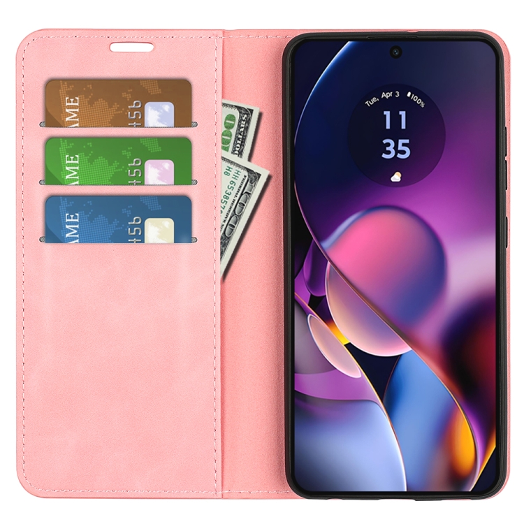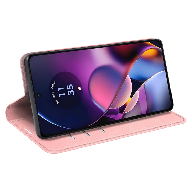 Funda de Cuero para Motorola Moto G54 con Succión Magnética de Piel Retro (Rosa)