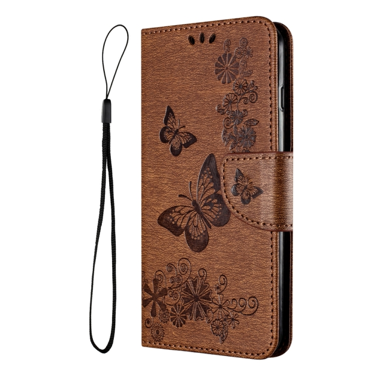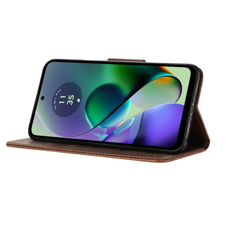 Funda de Cuero para Motorola Moto G54 con Tapa en Relieve de Mariposa (Marrón)