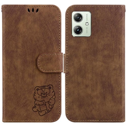 Funda para Motorola Moto G54 de Cuero con Relieve Little Tiger (Marrón)