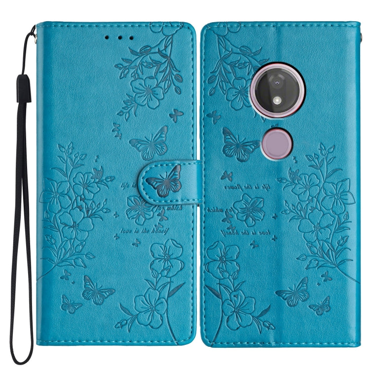 Funda de Cuero para Motorola Moto G7 Power con Mariposas y Flores (Azul)