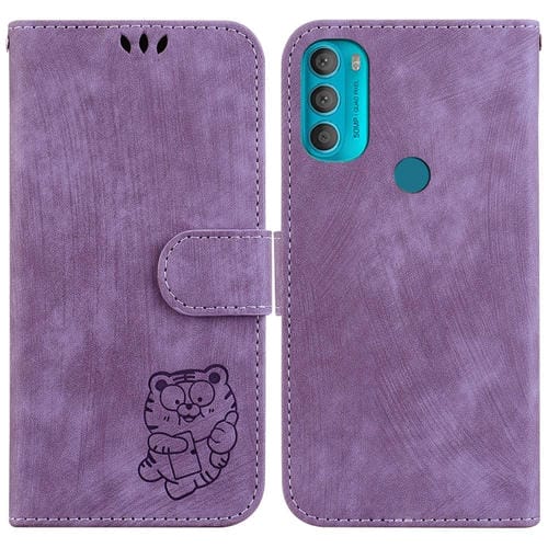 Funda para Motorola Moto G71 5G de Cuero con Relieve Little Tiger (Púrpura)