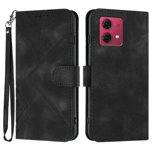 Funda de Cuero para Motorola Moto G84 5G con Sensación de Piel y Patrón de Líneas (Negro)