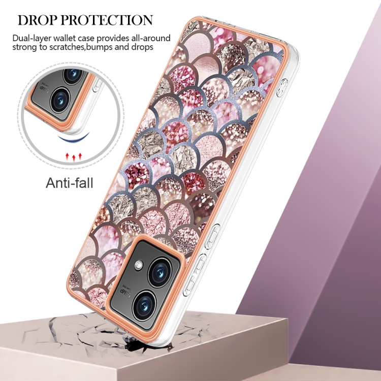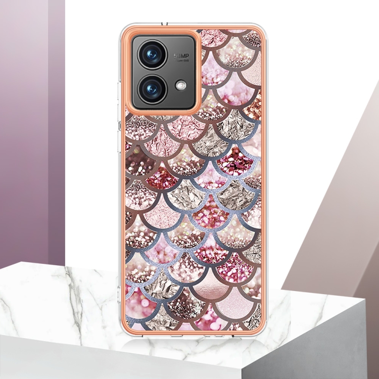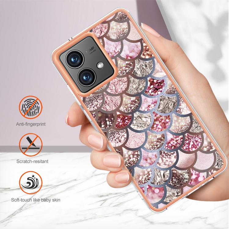 Estuche para Motorola Moto G84 TPU Imd con Galvanoplastia y Escamas Rosadas