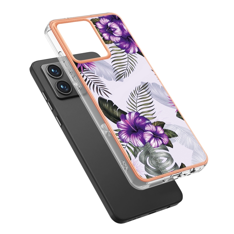 Funda TPU Galvanoplastia IMD para Motorola Moto G84 (Flor Morada)