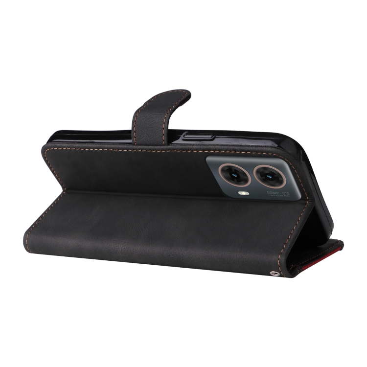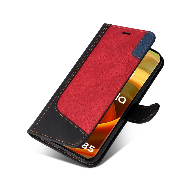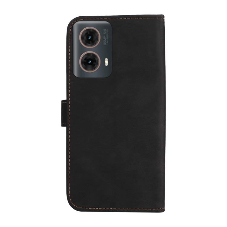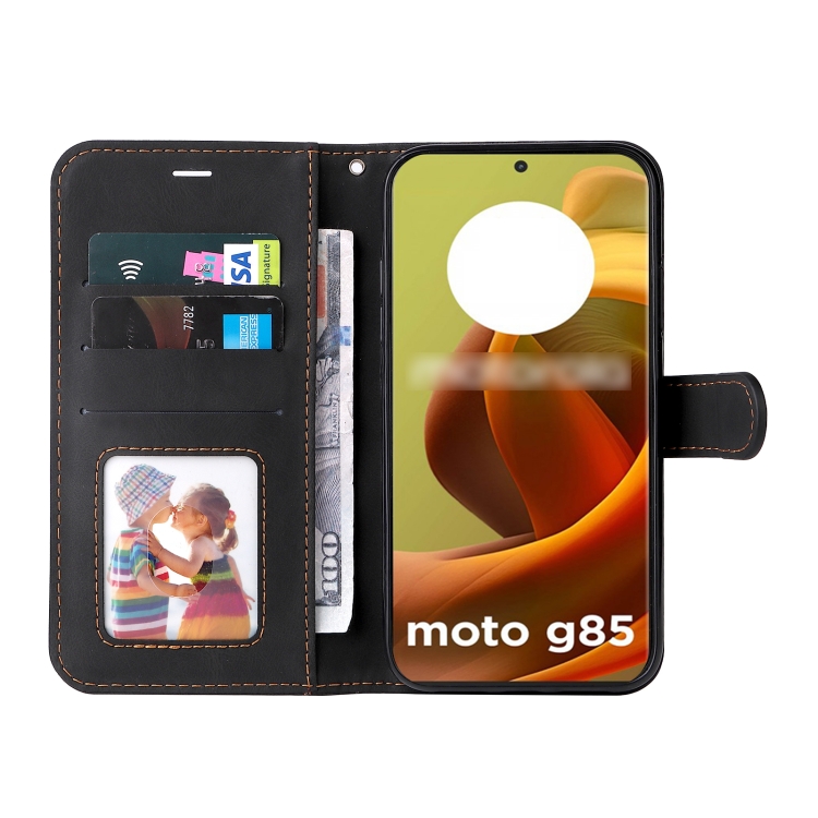 Funda de Teléfono Motorola Moto G85 Cuero con Empalme de Tres Colores (Negro)