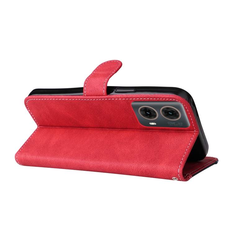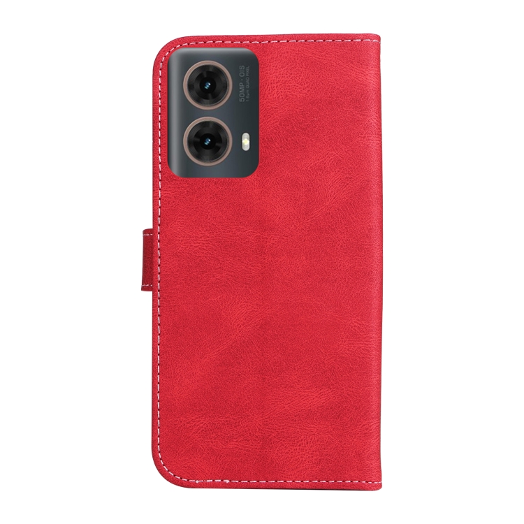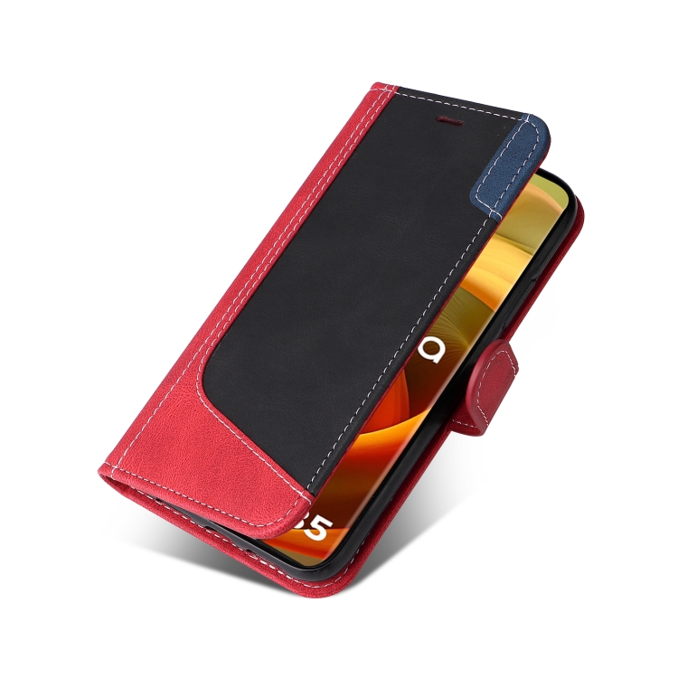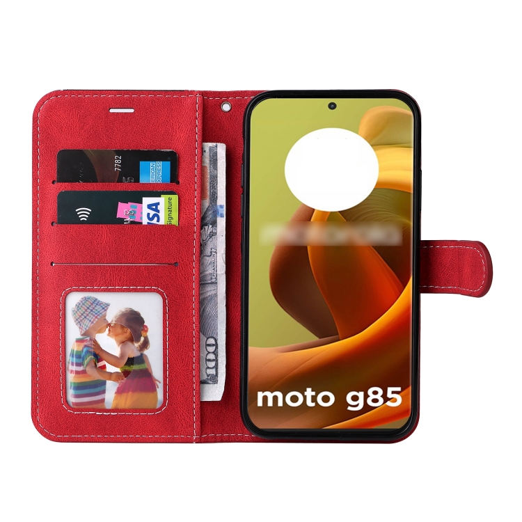 Funda de Cuero para Motorola Moto G85 con Empalme de Tres Colores (Rojo)