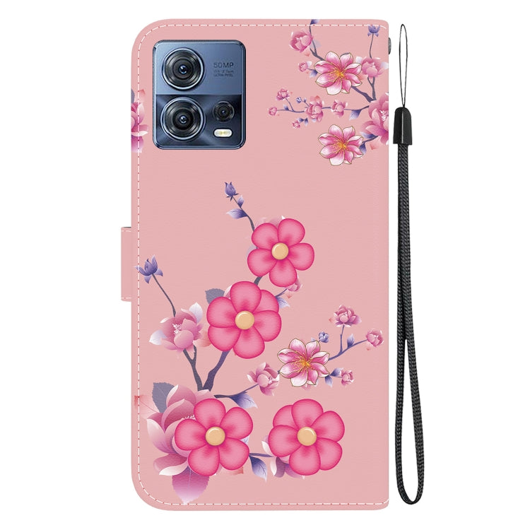 Funda de Cuero Motorola Moto S30 Pro 5G con Dibujo Coloreado y Textura de Cristal (Flores de Cerezo)