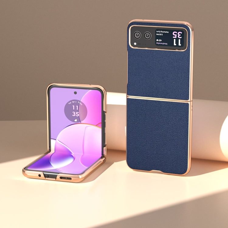 Funda para Motorola Razr 40 Serie Luolai de Cuero Genuino con Nanochapado (Azul Oscuro)