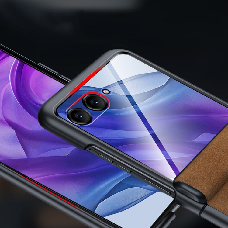 Funda para Motorola Razr 50 Plegable de PU con Bisagra y Película Ultra Integrada (Marrón)