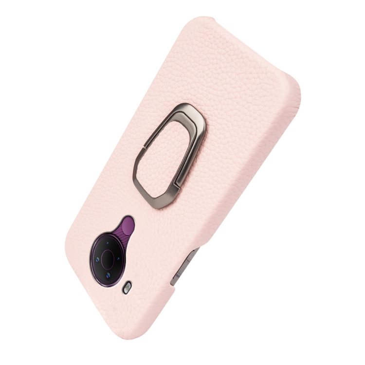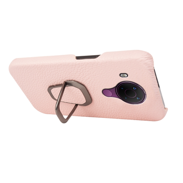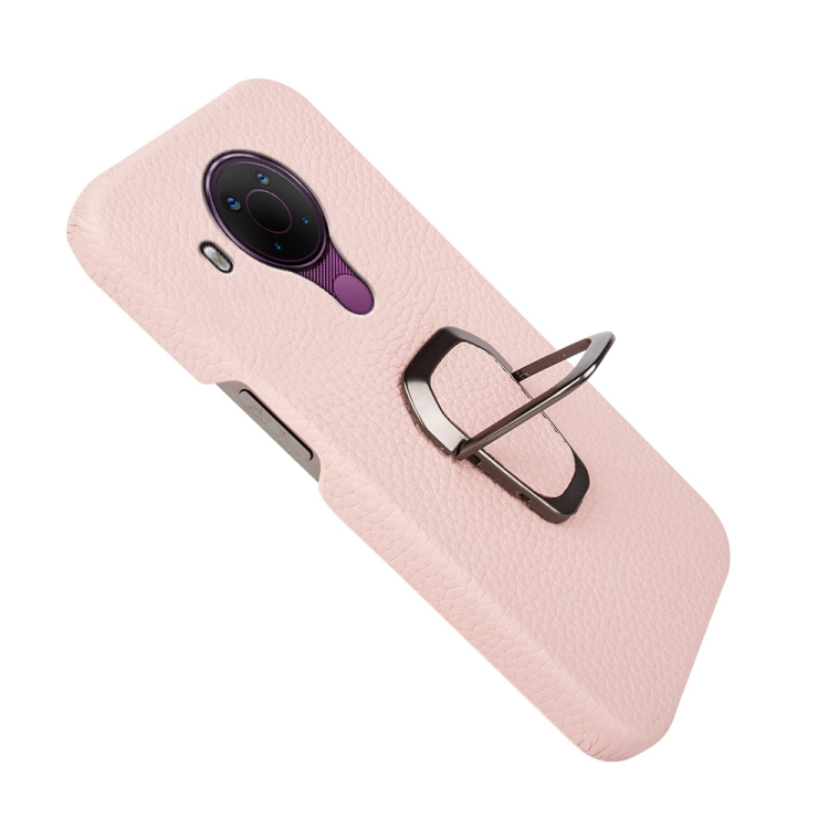 Para Nokia 5.4 Ring Holder Litchi Texture Funda de teléfono de cuero genuino (rosa)