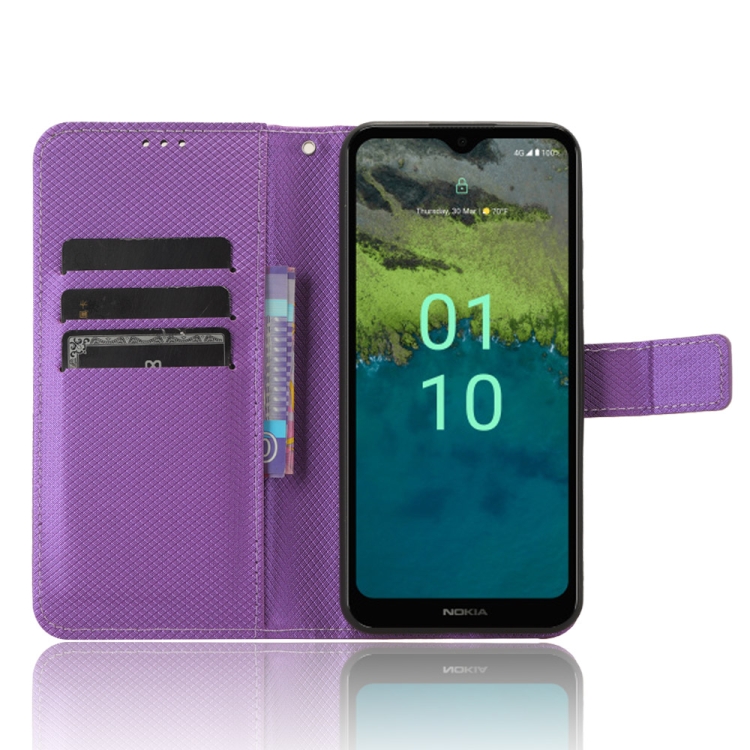 Funda de Cuero para Nokia C110 4G con Textura de Diamante (Púrpura)