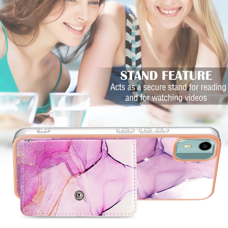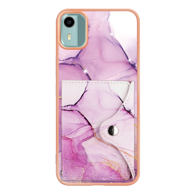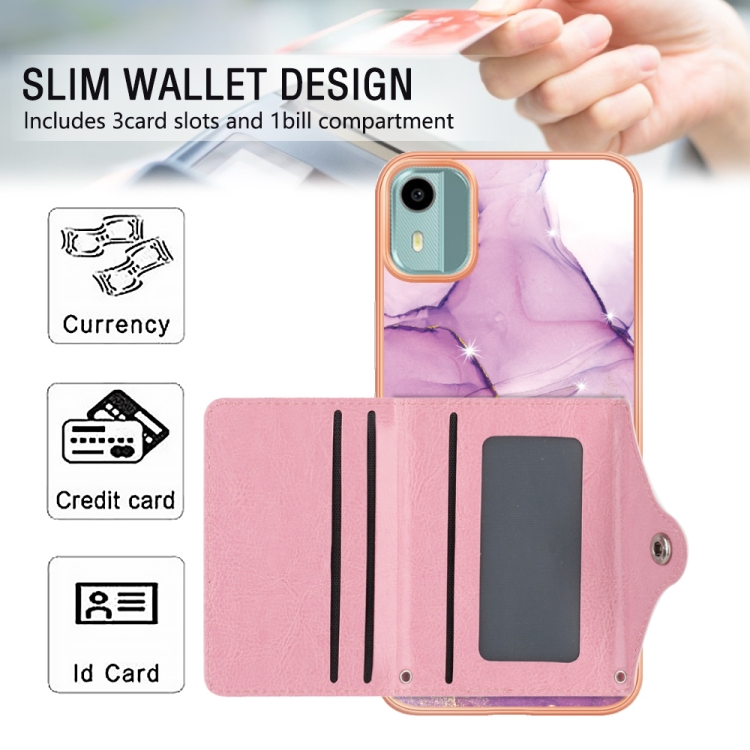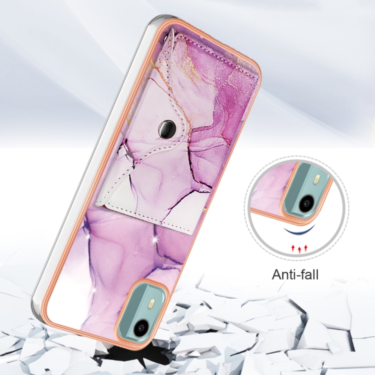Estuche para Nokia C12 con Ranura para Tarjeta y Patrón Mármol (Oro Rosa Púrpura)