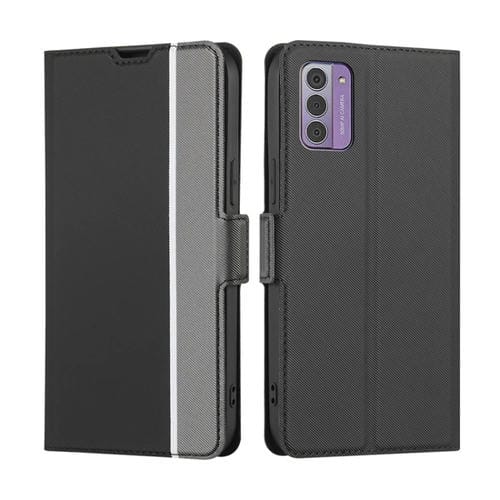 Funda de Cuero para Nokia G42 5G con Botón Lateral y Textura de Sarga (Negro)