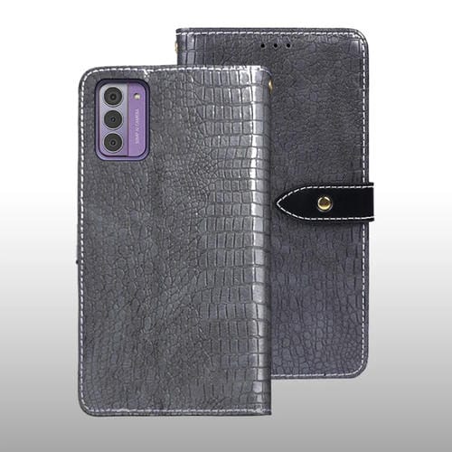 Funda de Cuero Idewei para Nokia G42 5G con Textura de Cocodrilo (Gris)