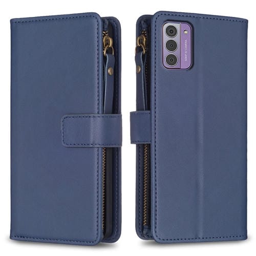 Funda de Cuero para Nokia G42/G310 con 9 Ranuras para Tarjetas y Cremallera (Azul)