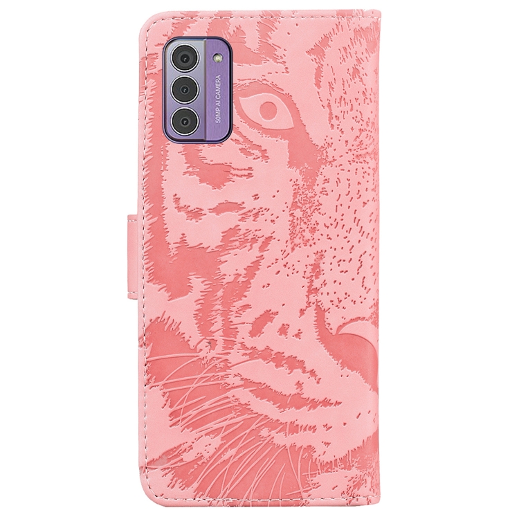 Funda de Cuero Flip para Nokia G42 con Patrón Tiger Embossing (Rosa)
