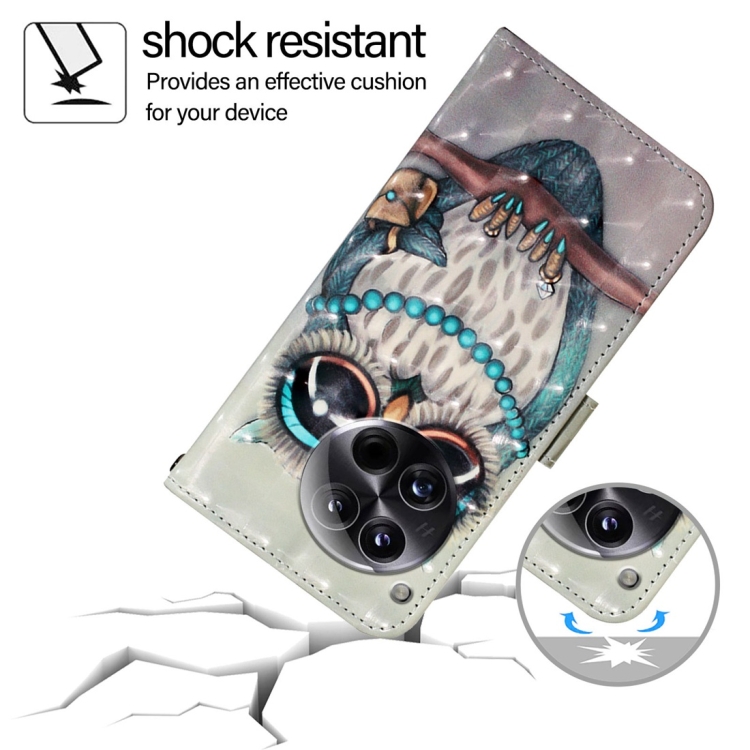 Funda de Cuero para OnePlus 12 Global 3D Painting con Tapa Horizontal (Búho Gris)