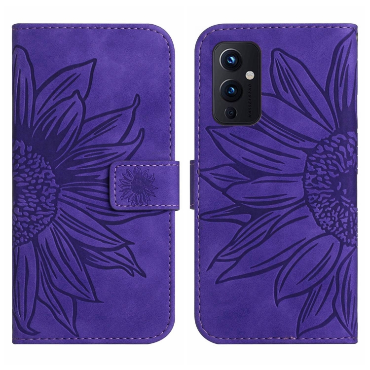 Funda de Cuero Flip para OnePlus 9 con Cordón y Diseño Sun Flower (Morado Oscuro)