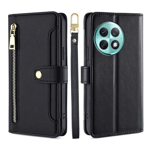 Funda de Cuero OnePlus Ace 2 Pro Lite con Billetera, Cremallera y Textura de Oveja (Negro)